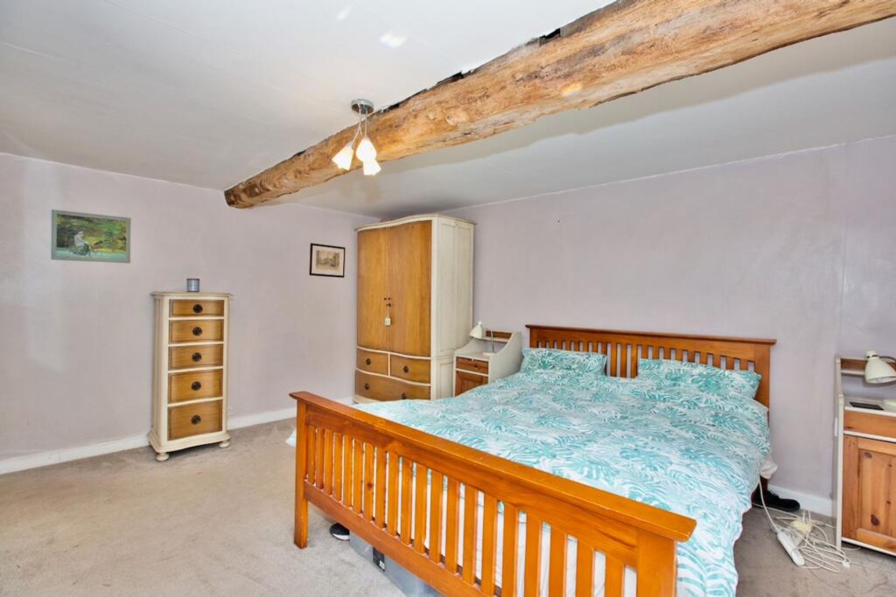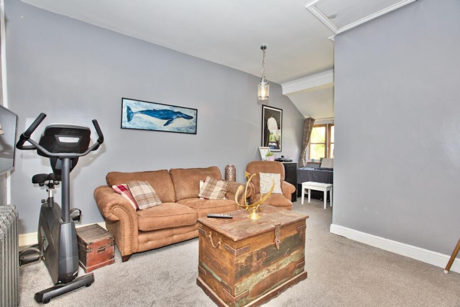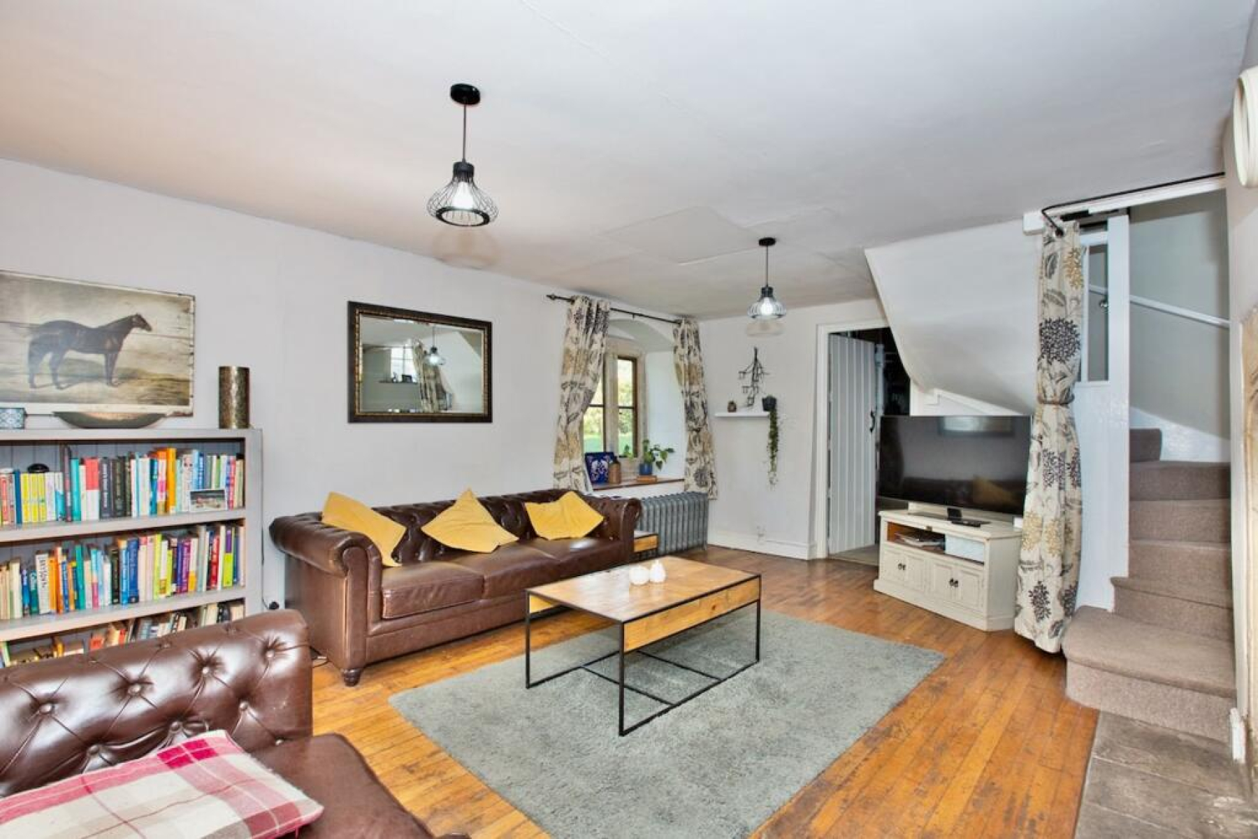 The main reception room boasts beautiful timber floors and a stunning inglenook fireplace, home to a wood-burning stove. A second reception room provides flexibility, serving as a dining area or additional sitting room, with access to a shower room and a spacious loft area, which can be utilized as a home office.