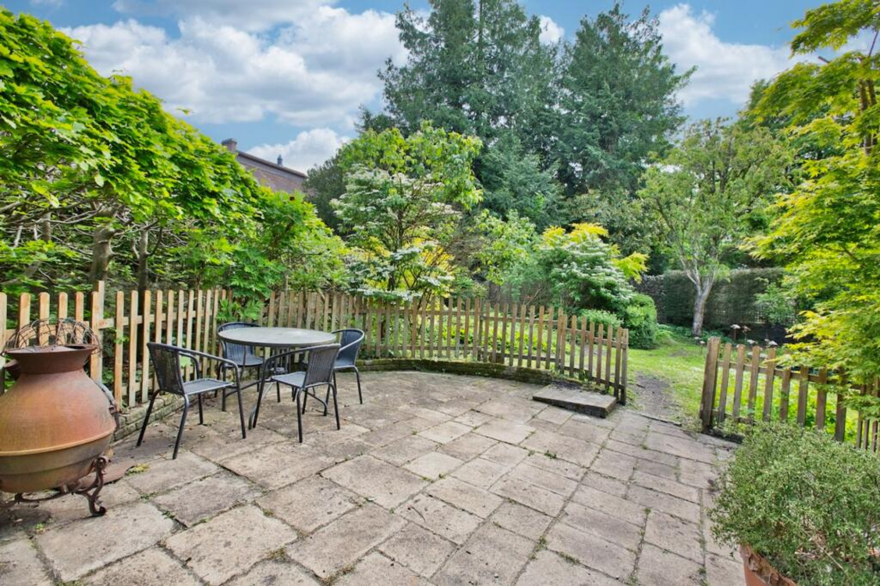 Outside, the property benefits from a enclosed walled garden, featuring mature trees, a patio area, and two outbuildings one of which is currently used as a wood store. The outbuildings are ideal for storage or potential improvements.
