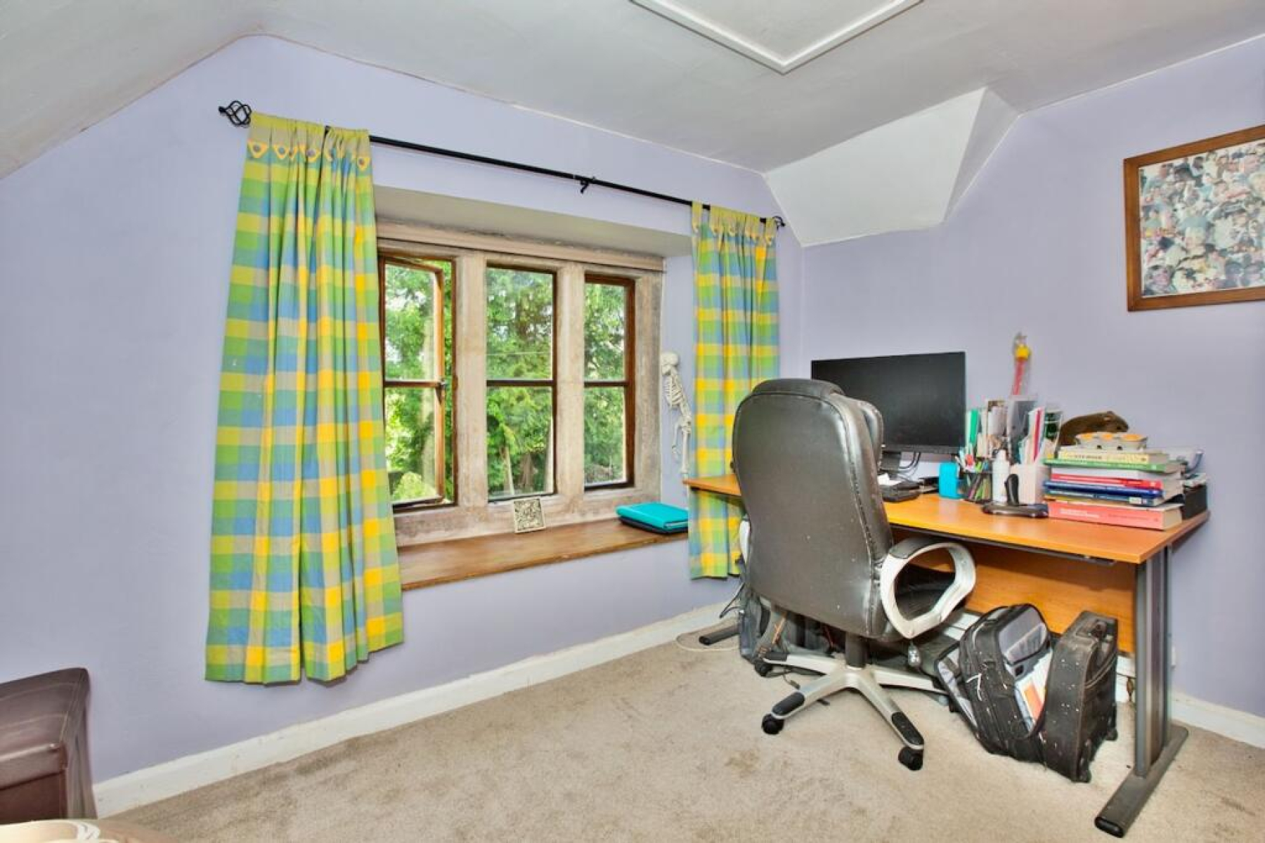 The property features four double bedrooms, spread across two floors. The first floor hosts two well-proportioned bedrooms and a bathroom, while the second floor offers two additional bedrooms and another bathroom. The bedrooms enjoy garden views, and some have been recently redecorated, with new carpets fitted on the landings. The bathrooms are elegantly furnished with traditional fixtures, heated chrome towel rails, and attractive tiling.